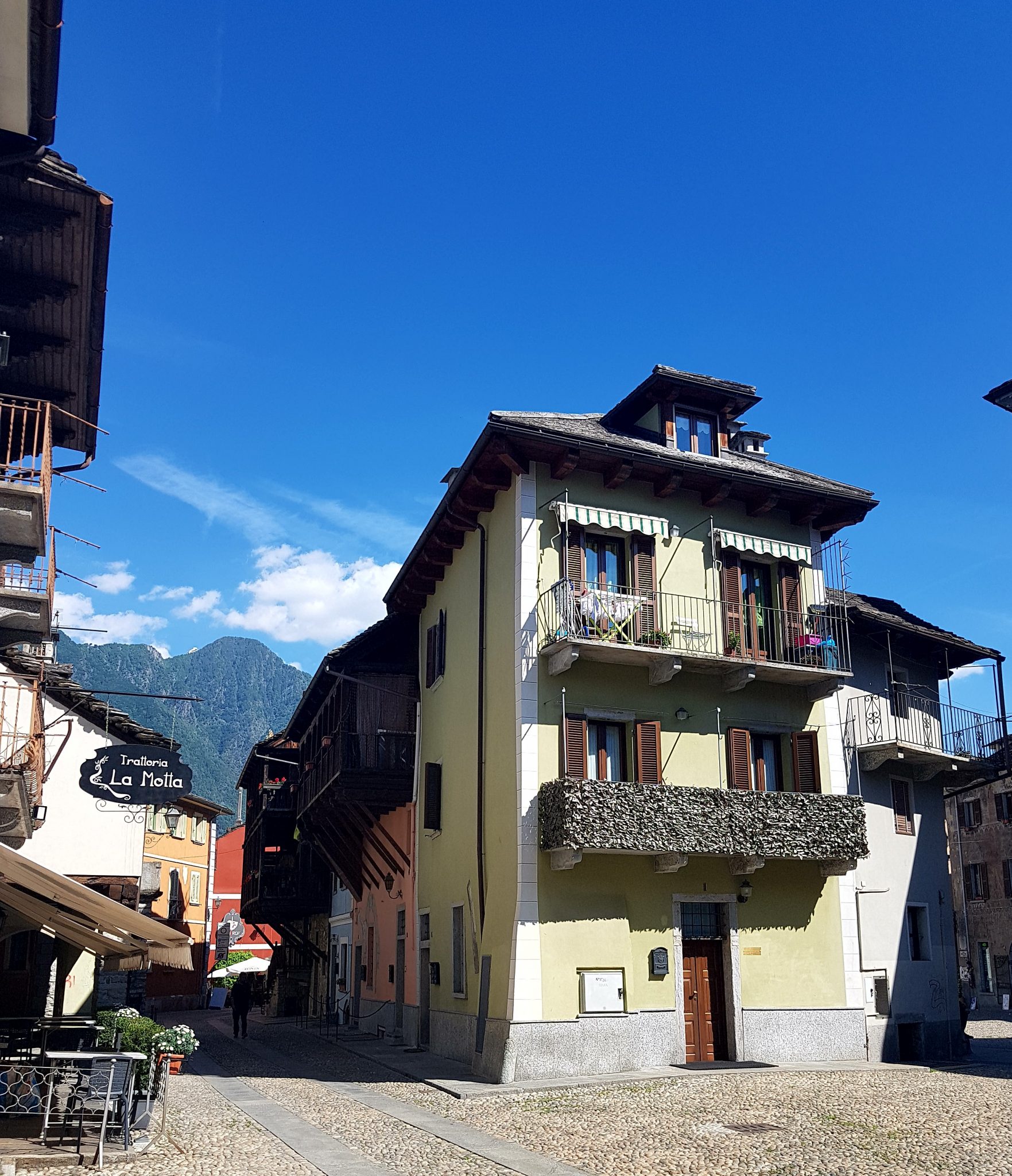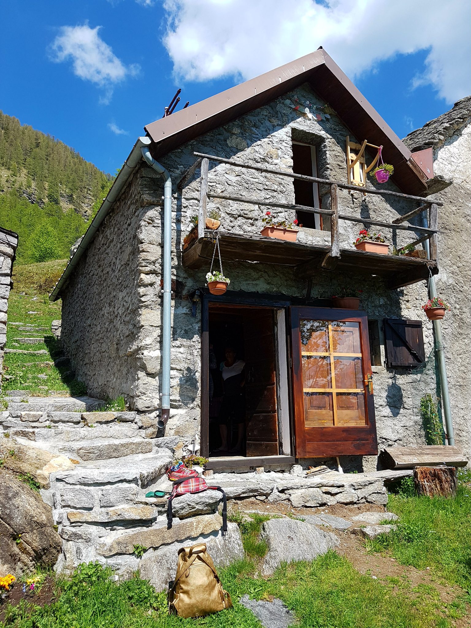 During my holiday in the Alps I fell in love with the beautiful houses of stone and wood, with flowery balconies and awesome views. Originally they would have the animals living underneath them. The power of the mountains, trees and waterfalls around them is amazing, such a huge view…