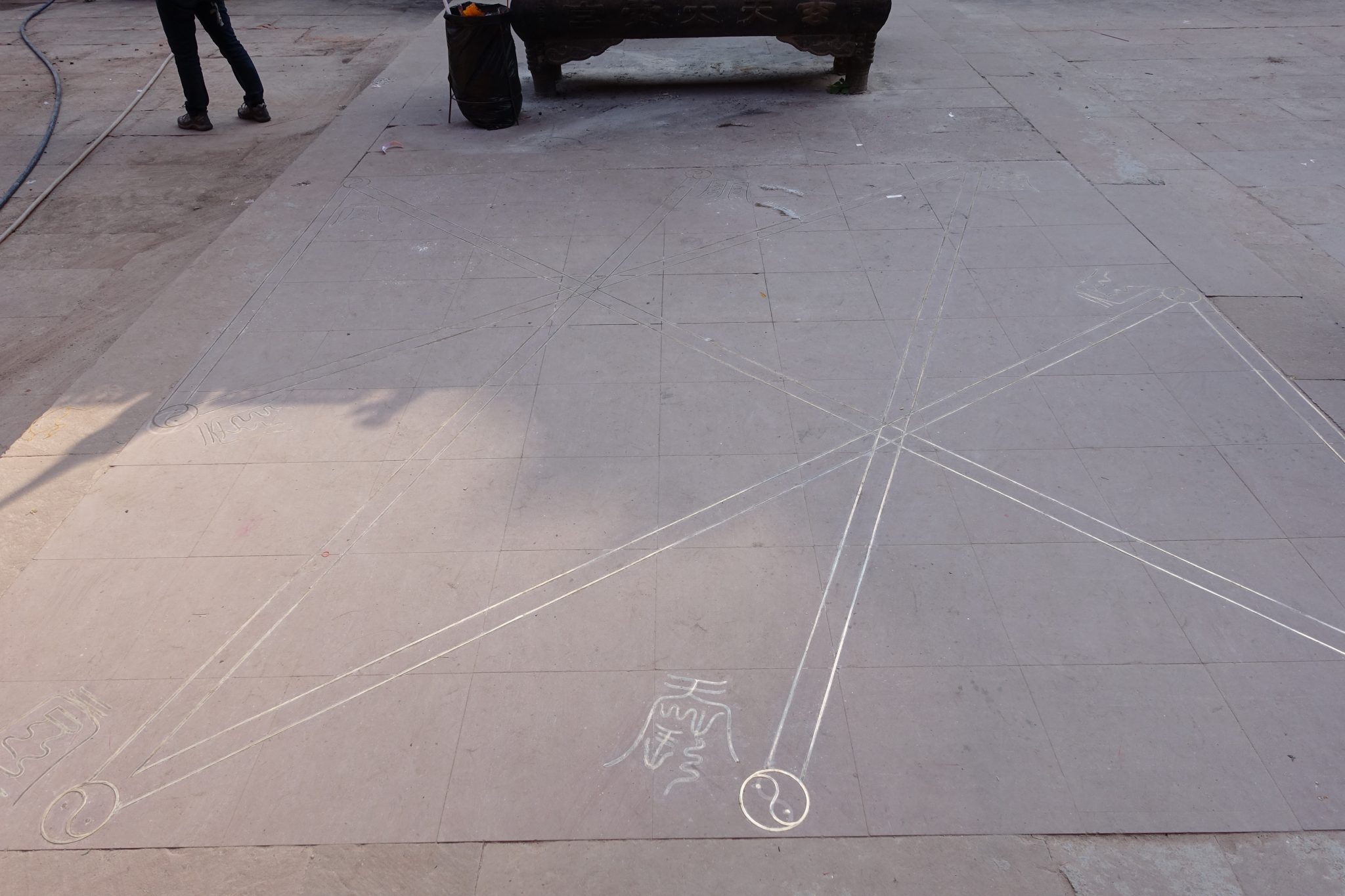 I was thrilled to see these large scale feng shui drawings on the ground in China – representing the bagua, yin and yang and Flying Stars: